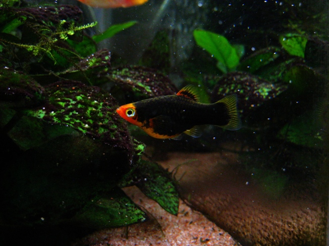うちの水槽にたった一匹残ってるヘルメットプラティ。